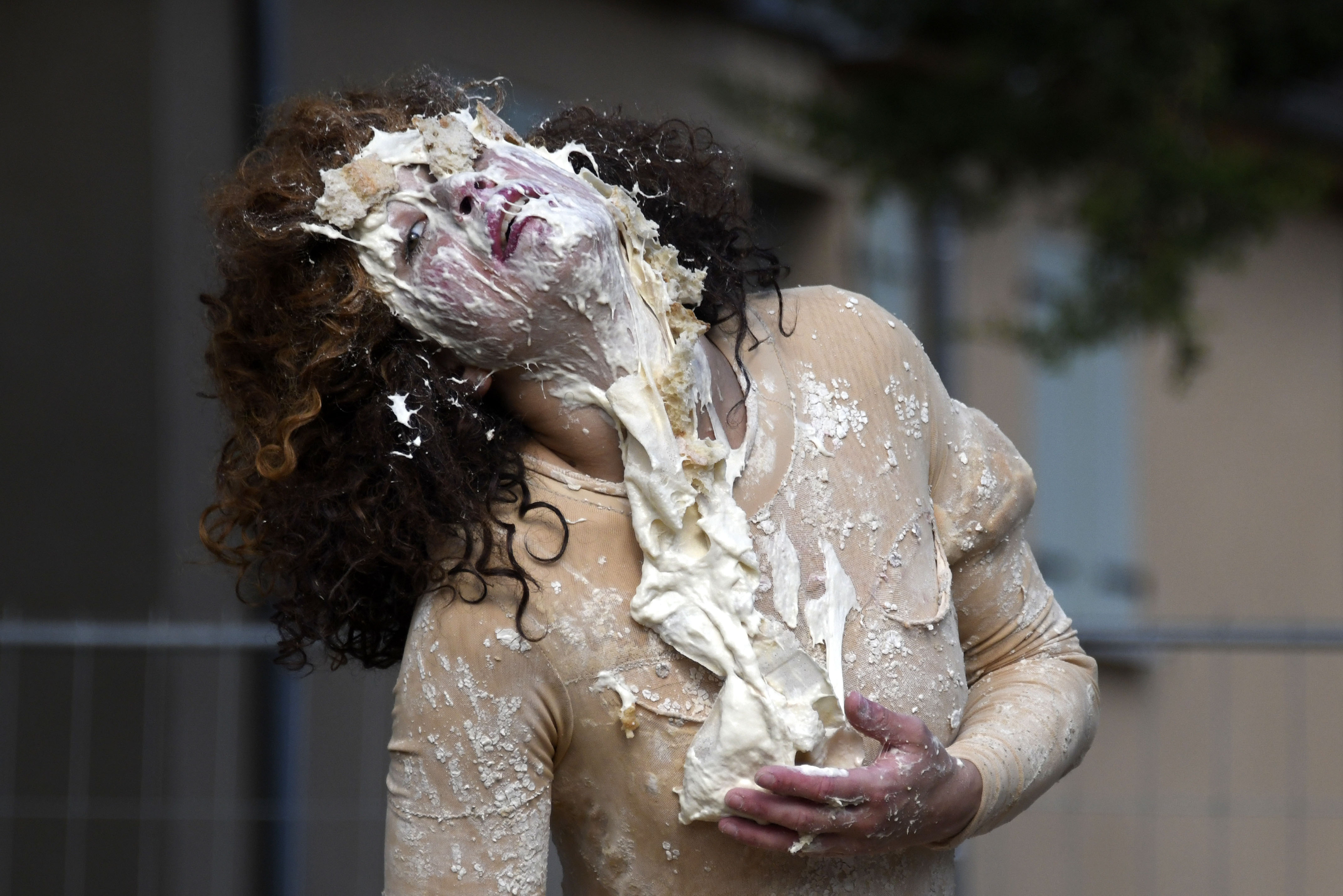 À la lisière entre acte performatif et installation, c’est un monologue jubilatoire qui vient gratter les spectateur.rice.s avec bouffonnerie et gravité.