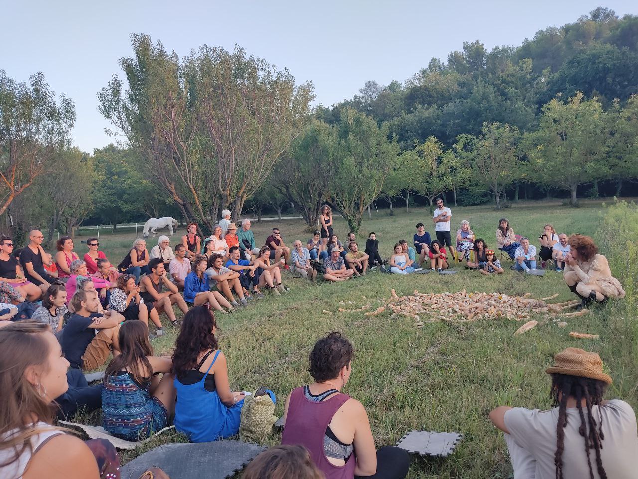 Spectacle pour petite place (milieu urbain), clairière de forêt, champ...
